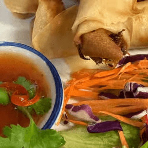 Vegetable rolls fried until crunchy. Served with sweet and source sauce. (Not gluten free)