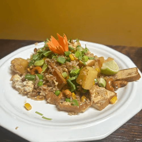 Pineapple, egg, cashew nuts, mixed vegetables
