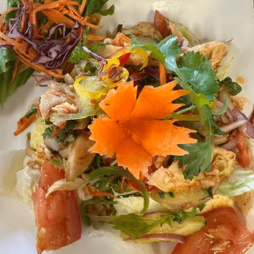 Lemongrass chicken mix with lime juice, tomatoes, onions, cucumber Thai herbs and spices