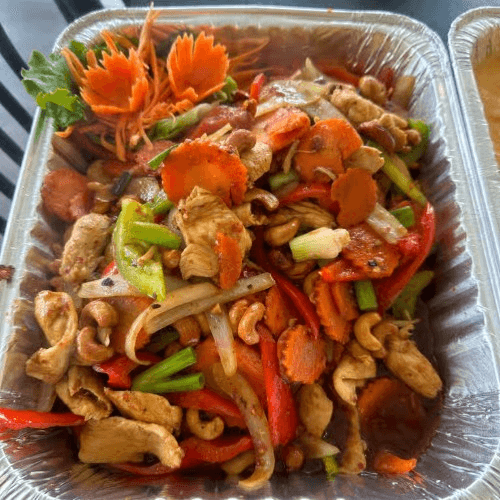Cashew nuts, bell peppers, carrots, onion with sweet chili paste