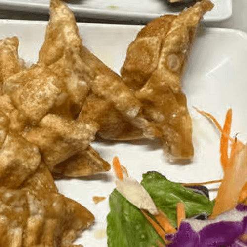 Chicken and veggies marinated and wrapped in wonton skin. Deep fried. Served with homemade sweet and sour sauce